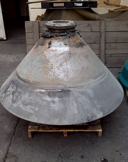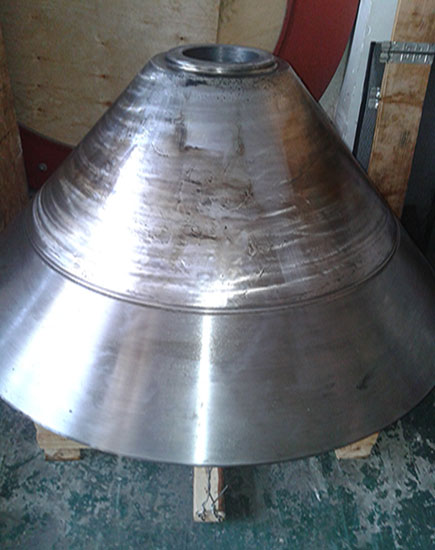 2014-06-10我司按標(biāo)準(zhǔn)維修工藝,對動錐體鑲套,重新加工螺紋;對動錐體外錐面補焊加工。維修后重新安裝球體。
